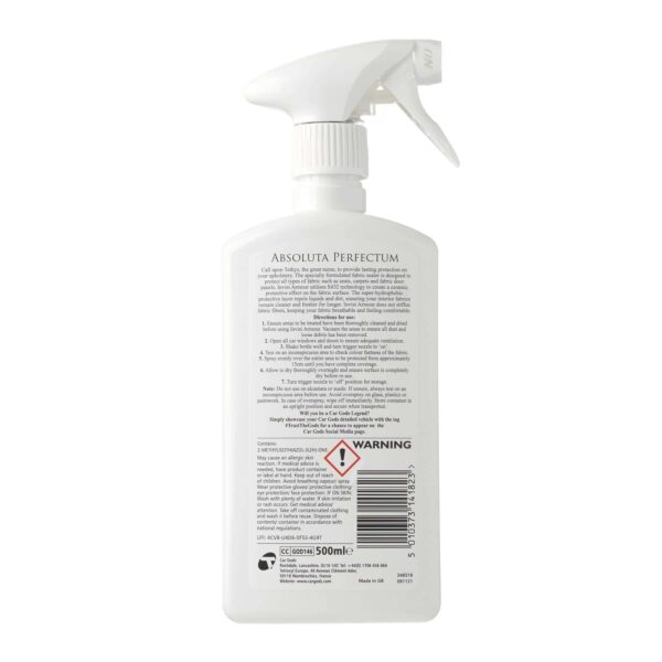 Call upon Tethys, the great nurse, to provide lasting protection to your upholstery.The specially formulated fabric sealer is designed to protect all types of fabric such as seats, carpets, and fabric door panels. Invisi Armour utilizes SiO2 technology to create a ceramic protective effect on the fabric surface. The super-hydrophobic protective layer repels liquids and dirt, ensuring your interior fabrics remain cleaner and fresher for longer. Invisi Armour does not stiffen fabric fibers, keeping your fabric breathable and feeling comfortable.